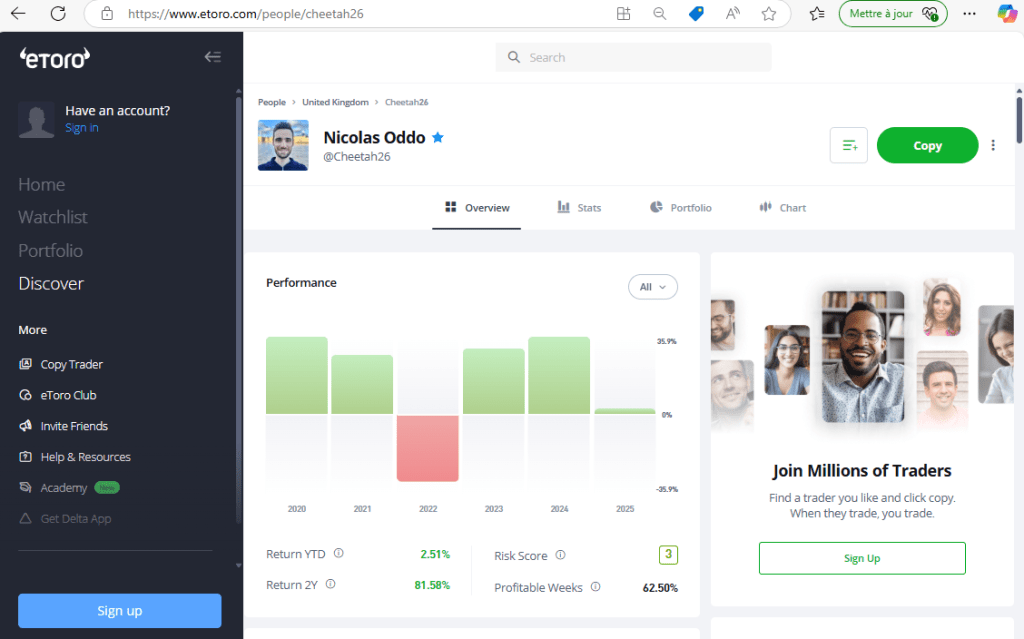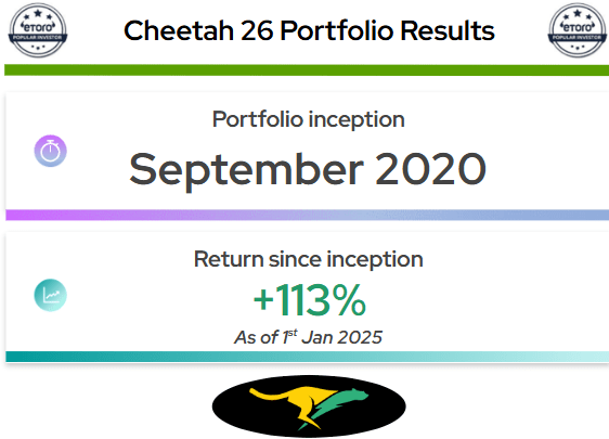 I am a Popular Investor on eToro since November 2021, which means that you can invest money in a copy of my Cheetah26 portfolio, and earn the same returns as my portfolio. More details here.