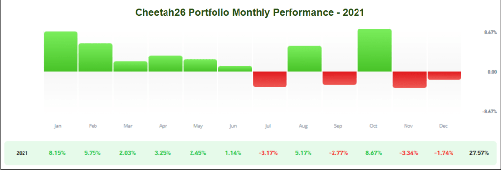 Cheetah26’s Portfolio has achieved 113% return since 2020.